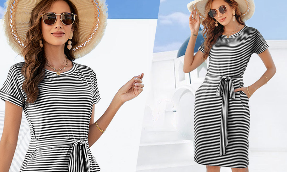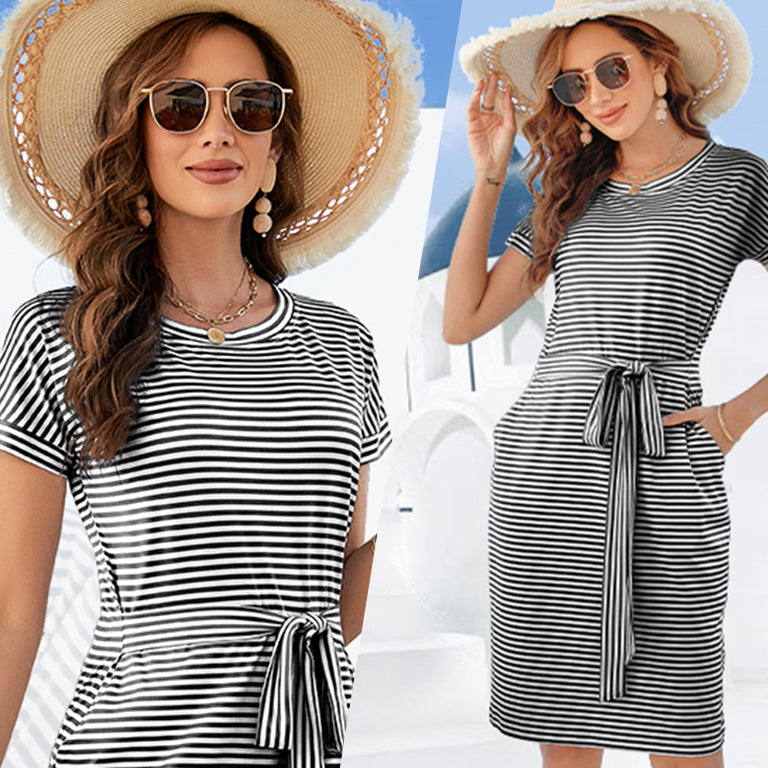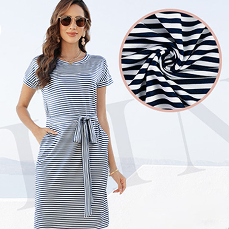 Yes, the Airy Stripe Sheath Cotton Dress fits true to size. The tie waist feature allows for adjustable fitting for a flattering silhouette.