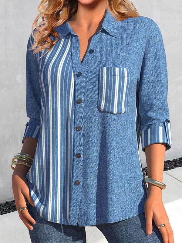 Women's casual striped patchwork denim shirt top