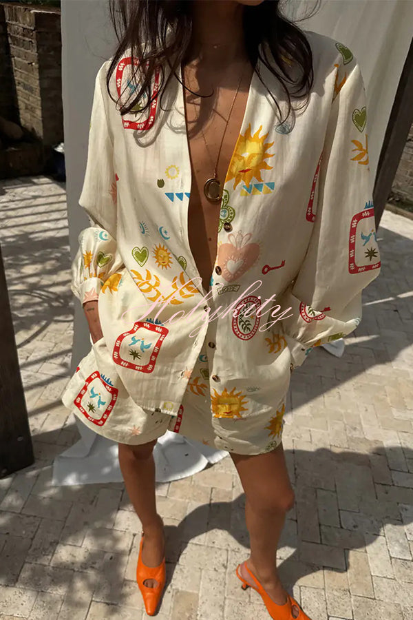 Summer Calls Unique Printed Loose Shirt and Elastic Waist Shorts Set