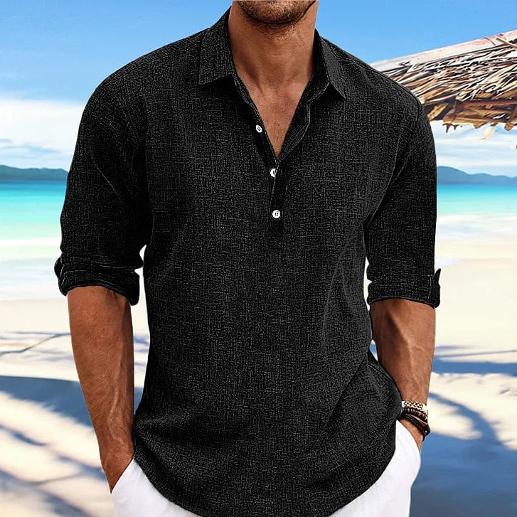 Lightweight Long Sleeve Henley Shirts for Men - Breathable Beach Streetwear Cotton Linen