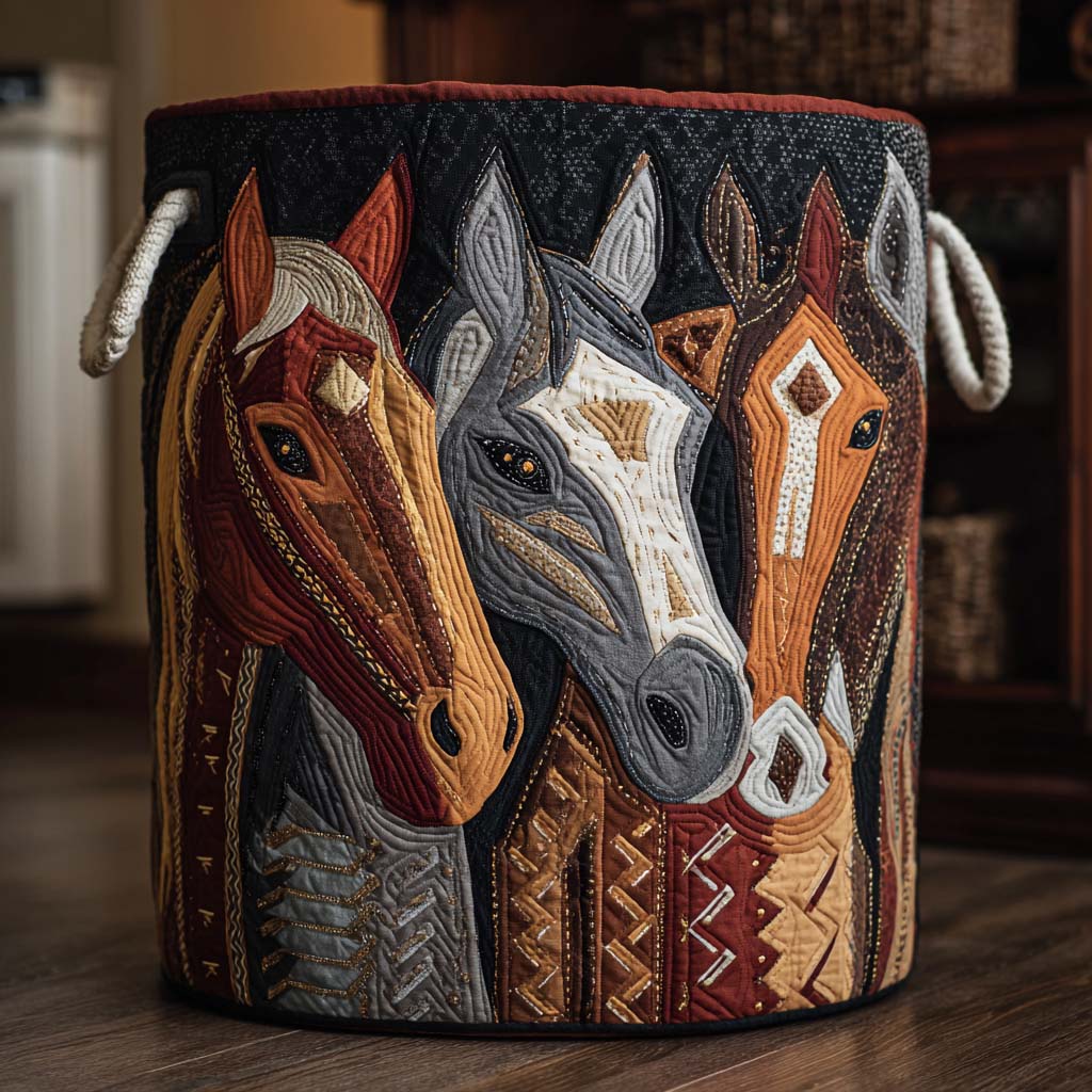 Mystic Horse Quilted Laundry Basket NCU0DDK1059