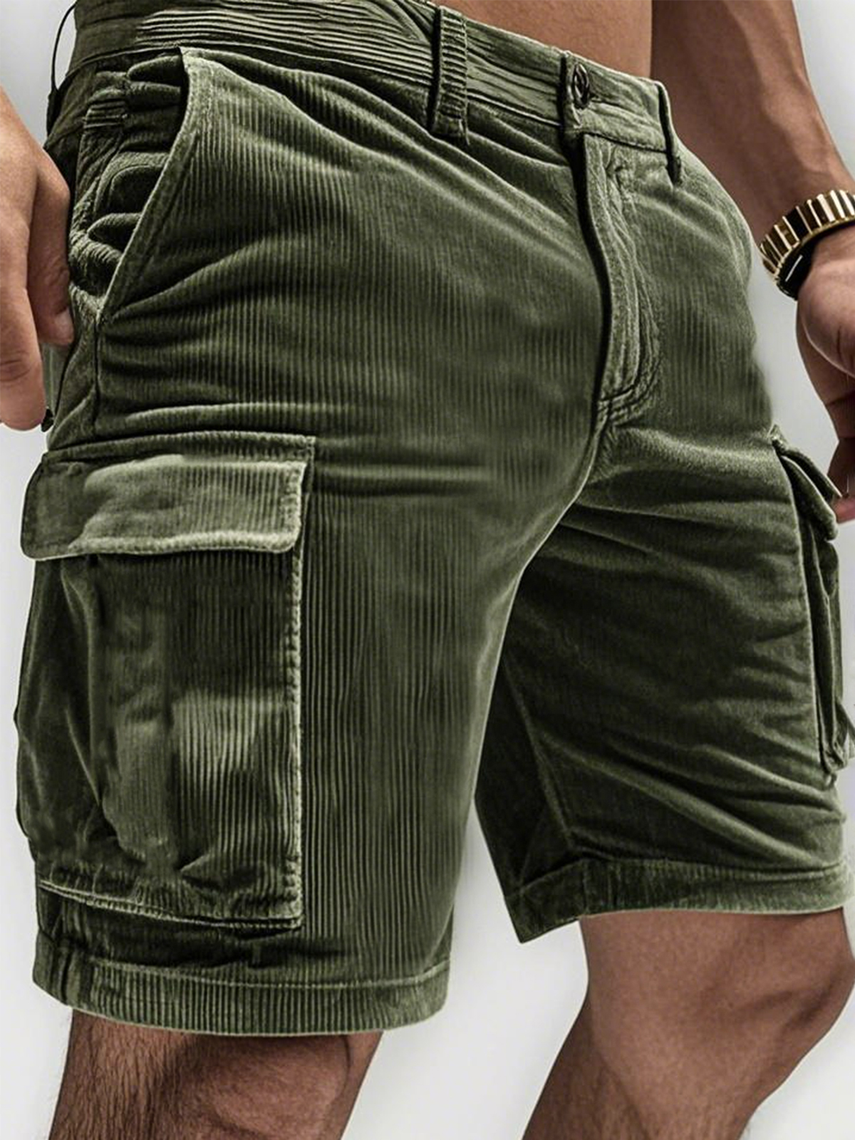 Men's Corduroy Multi-Pocket Summer Elastic Waist Casual Shorts