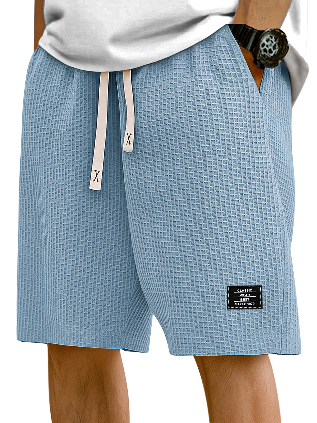 Men's Comfortable Waffle Texture Lace-up Stylish Casual Loose Shorts