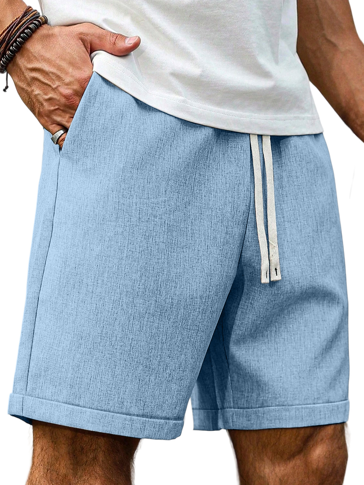 Men's Comfort Linen Lace-Up Elastic Waist Beach Shorts