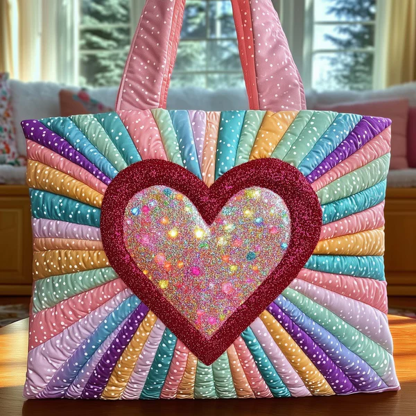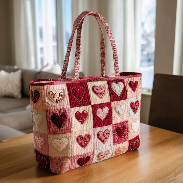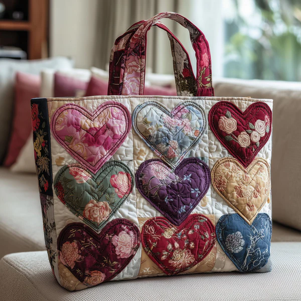 💖Only a Few Left --Artistic Heart Illustrated Embroidered Quilted Tote Bag