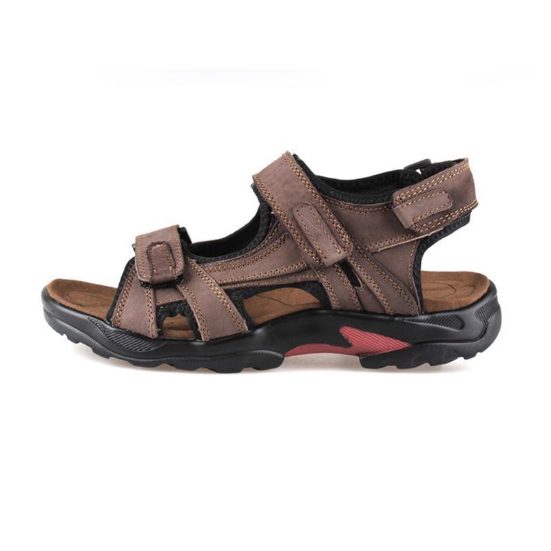 Men's leather beach shoes in the first layer with open toe slip summer handmade sandals in plus sizes outdoors