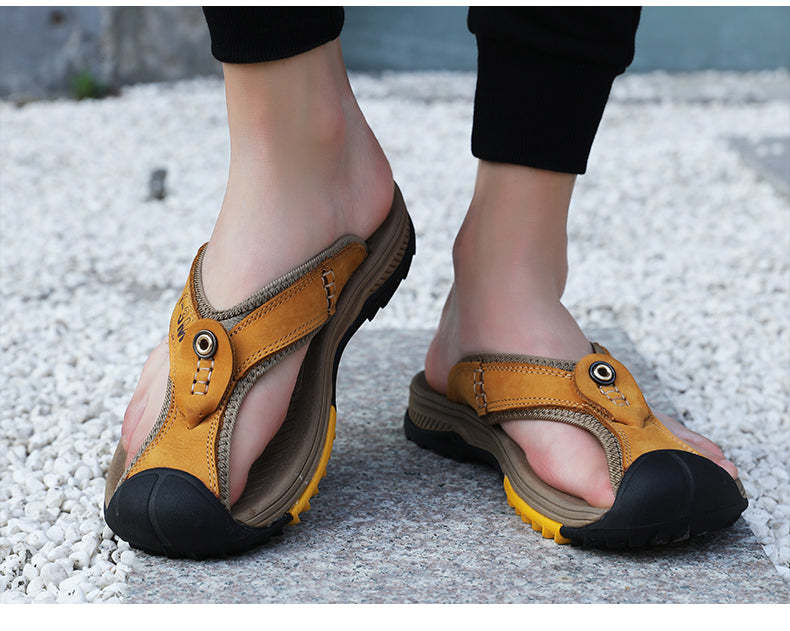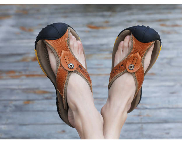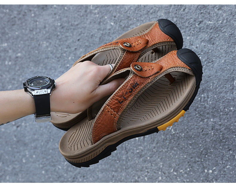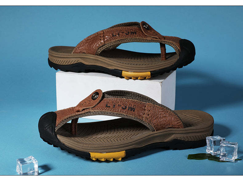 Leather Shoes Men's Sandals Men's Flip Flops Men's Casual Shoes Classic Massage Beach Slippers Anti-slip