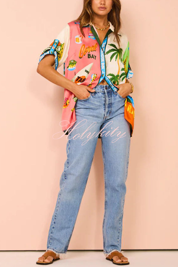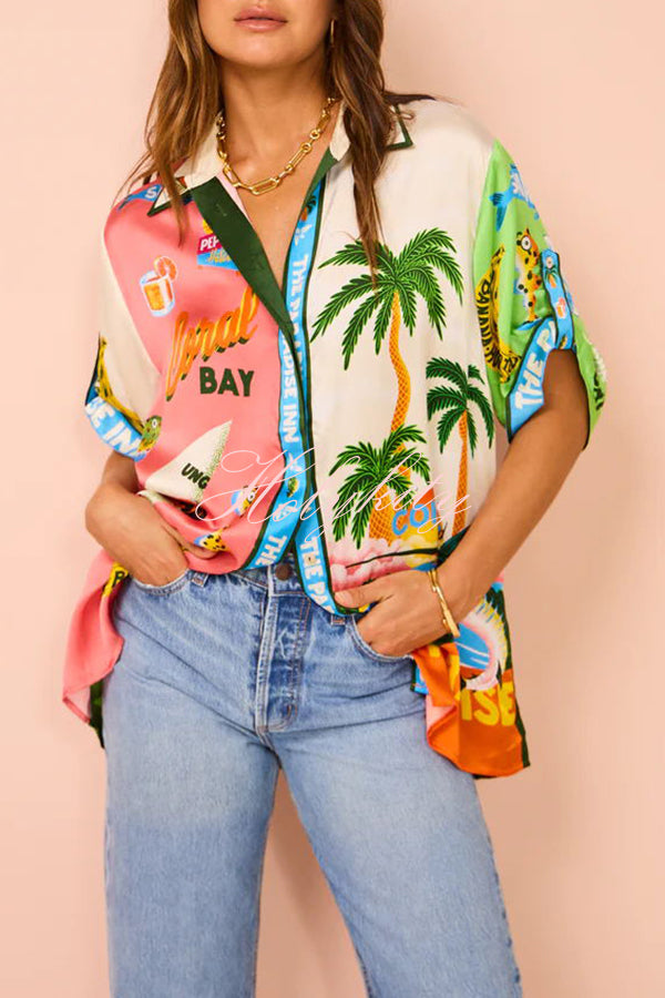 Crafted from a silk satin sandwash fabrication, this shirt features a relaxed silhouette, point collar and rolled sleeve hem with tab and shell button.Pair it with your favorite denim or the matching Silk Pant for a relaxed summer look.
