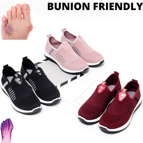 These?women's shoes for bunions made with?stretchy knit upper?that gives a?foot-fitting for this athletic slip-on?styled with a padded collar and?well-cushioned footbed?that ensures all-day comfort.