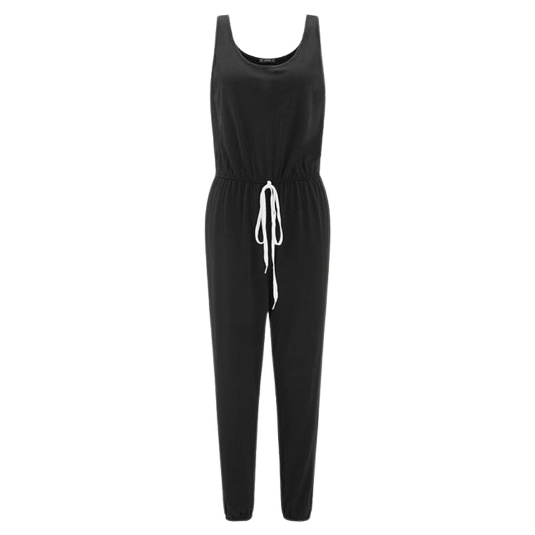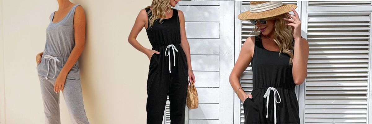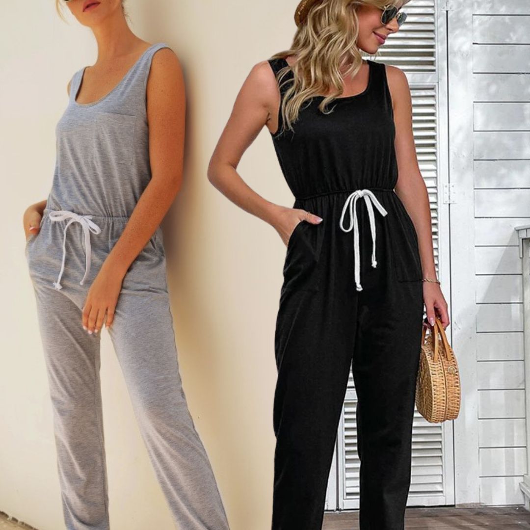 This jumpsuit has an elastic waistband and comes with a fashionable drawstring that allows ladies to create their desired fit. It also has side pockets.