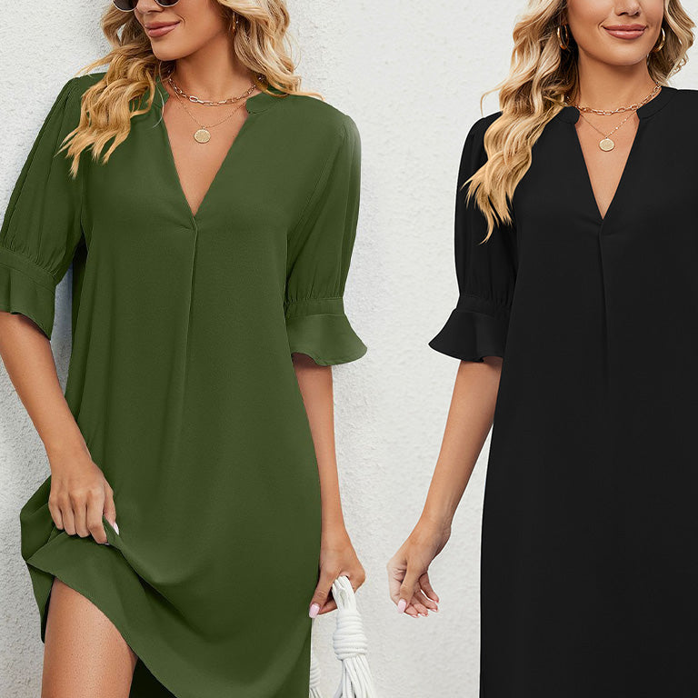 Absolutely! The dress is versatile due to its simple, elegant design and can be dressed up or down, making it suitable for a variety of occasions, from casual brunches to more formal gatherings.