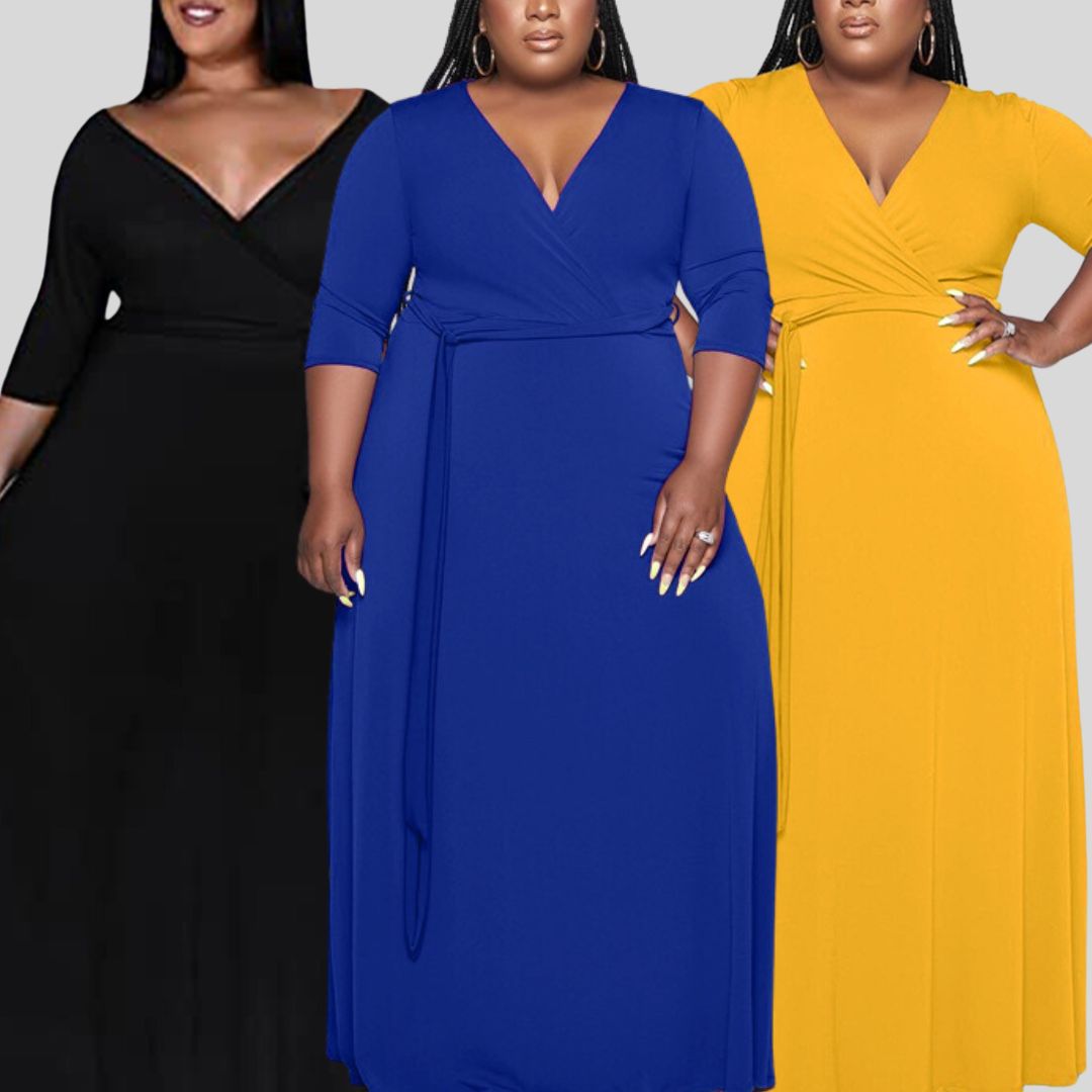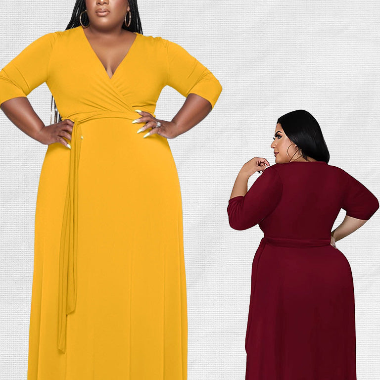 Finding the perfect fit can be challenging, so we offer multiple sizes in our Elegant Plus Size Belted Dress to accommodate different body shapes. The included belt allows you to adjust the dress to your desired fit. If you're still concerned about the fit, we recommend checking our detailed size chart to choose your most accurate size.