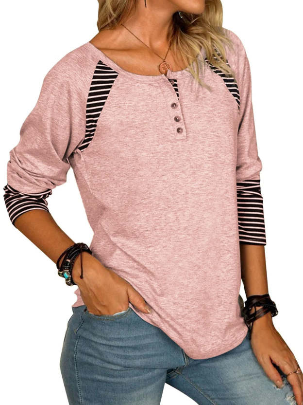 Full Size Striped Quarter Button Long Sleeve T-Shirt