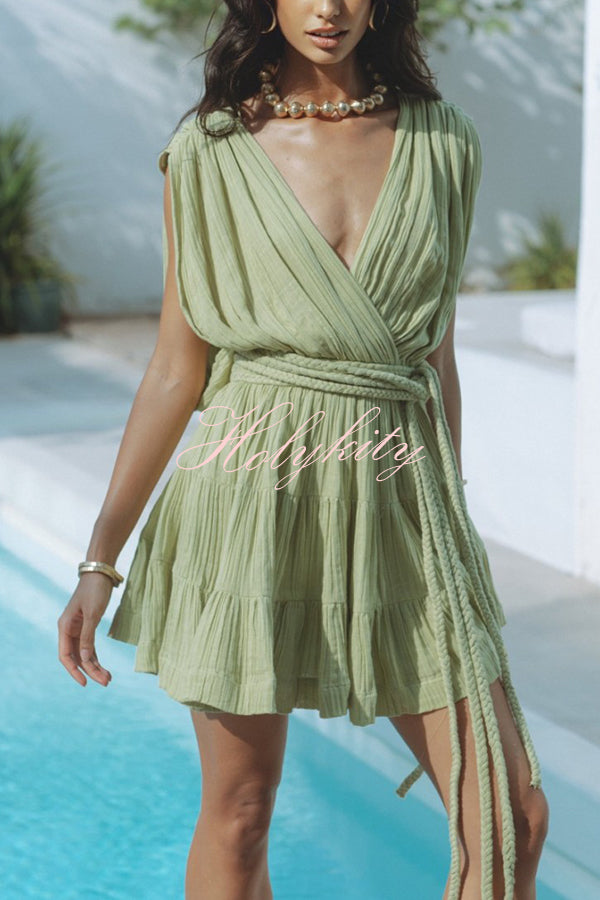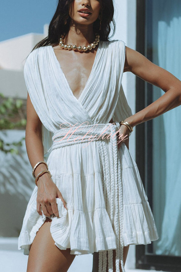 Why compromise on style this summer when you have the mini dress? With braided rope detailing on the waist and a plunging neckline, this outfit is perfect for all the parties you have on your list.