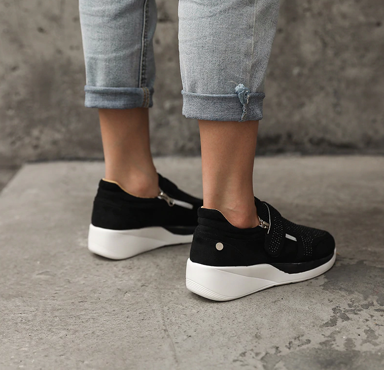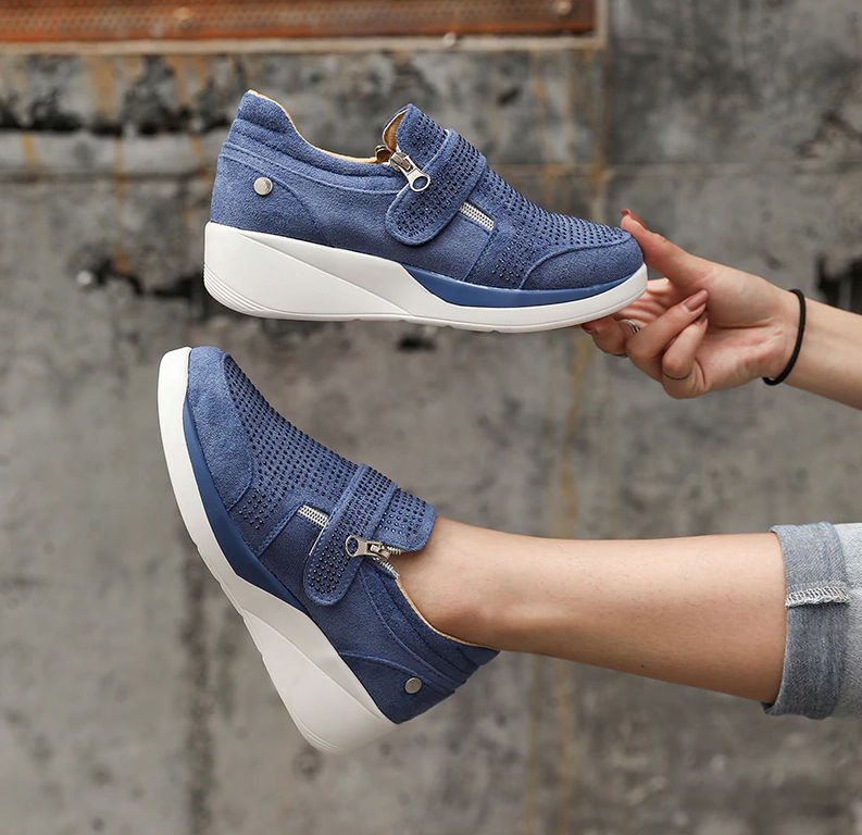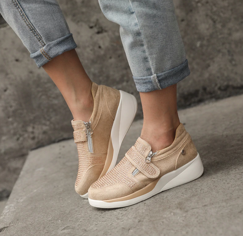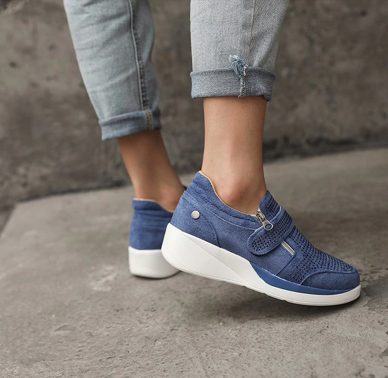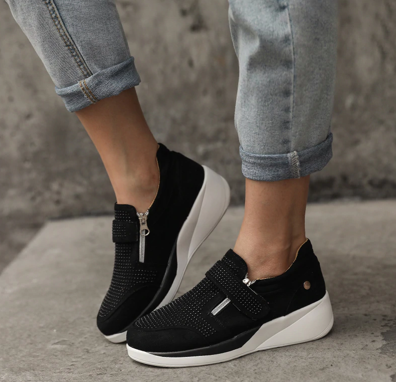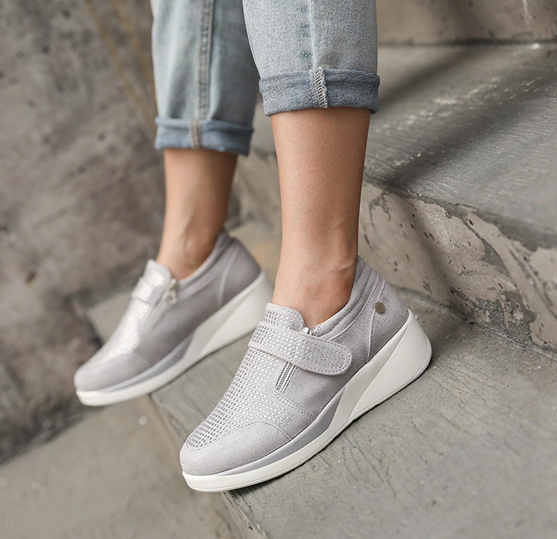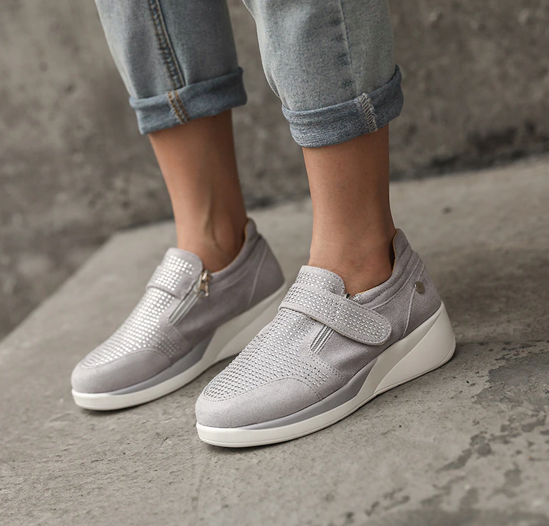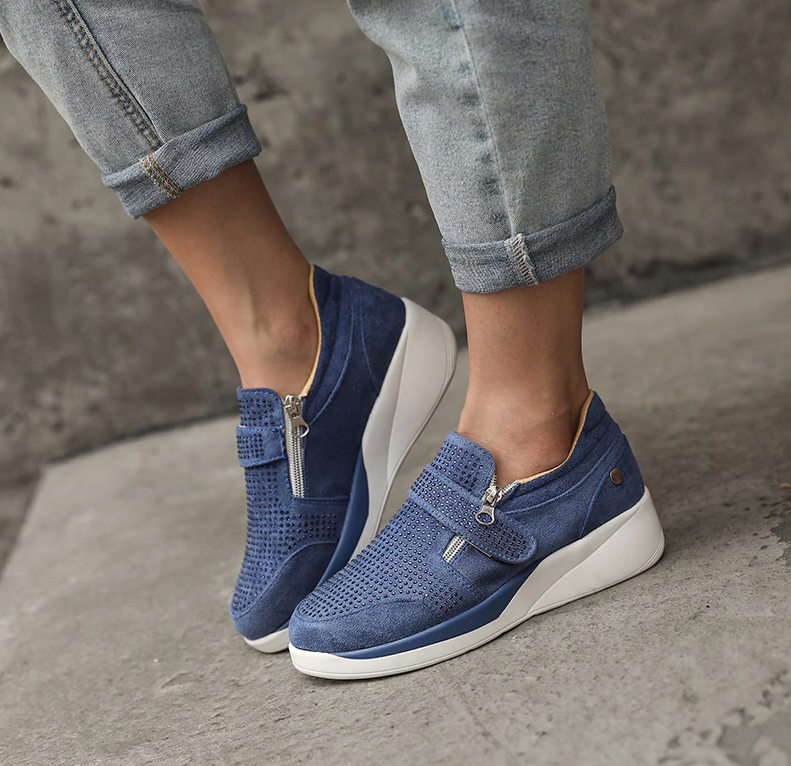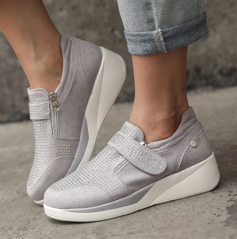 Comfortable Suede Rhinestone Wedge Sneakers – Orthopedic Support