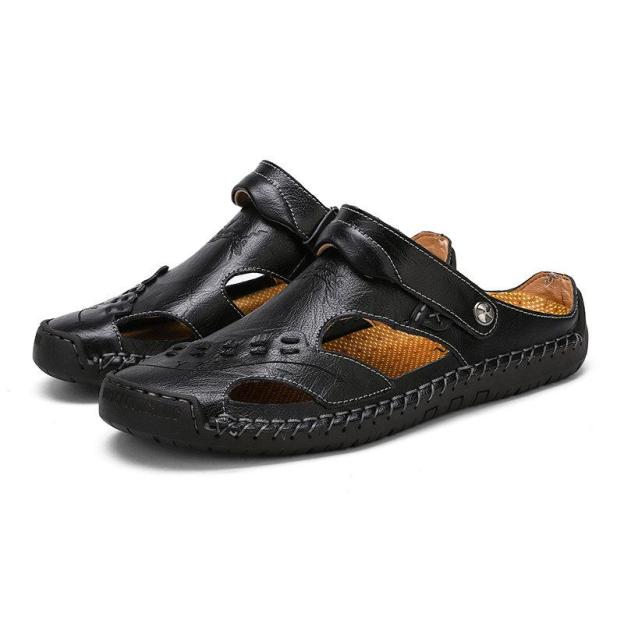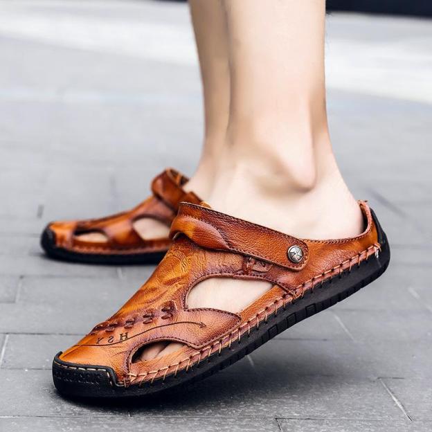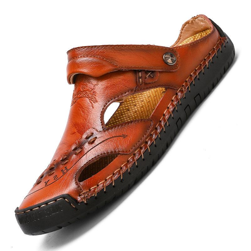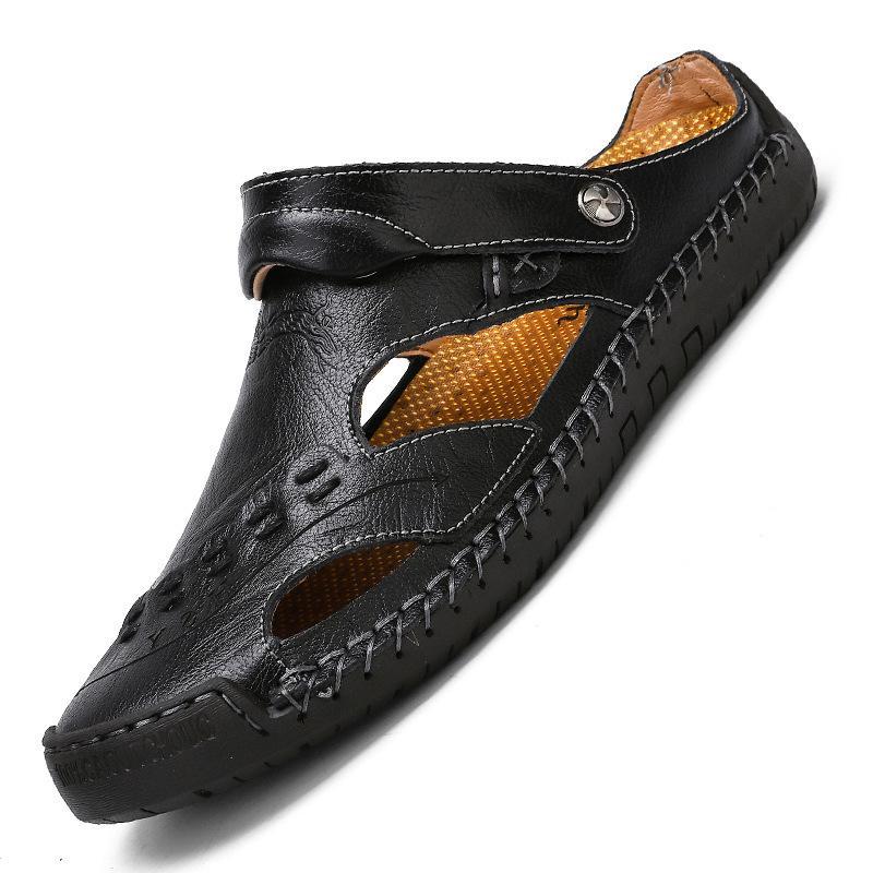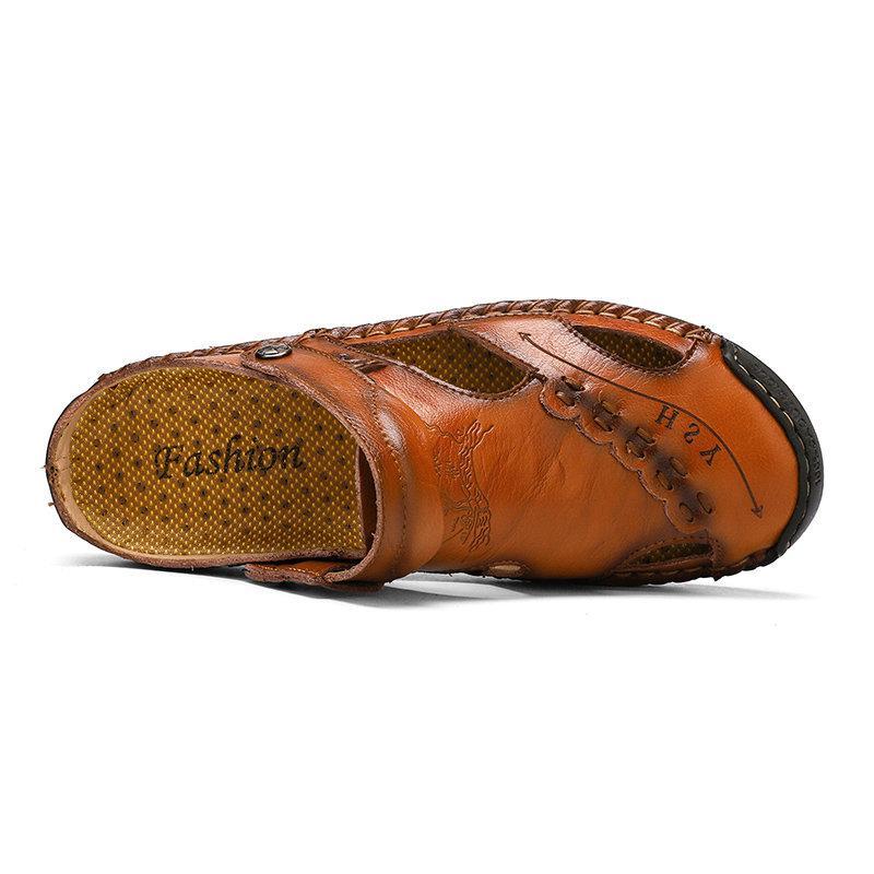 Men's Large Size Men Hand Sewing Closed Toe Comfortable Soft Leather Sandals