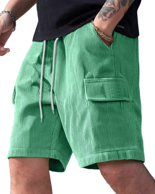 Men's Corduroy Multi-Pocket Summer Elastic Waist Casual Shorts