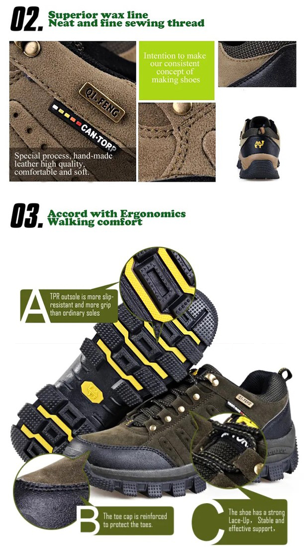 These hiking shoes are versatile enough for a variety of indoor and outdoor environments, including everyday use, mountaineering, hiking, camping, running, and more. Its durable construction and protective features make it ideal for heavy-duty tasks, ensuring the wearer's safety and comfort in demanding outdoor conditions.Own it and you will be the front end of fashion!