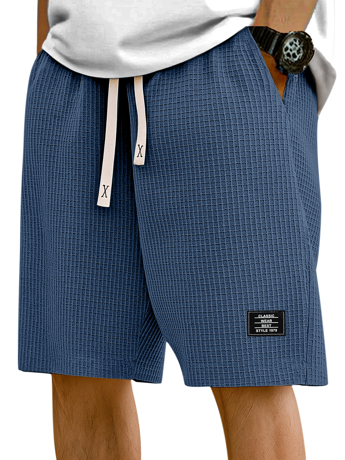 Men's Simple Solid Color Waffle Texture Casual Shorts