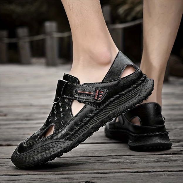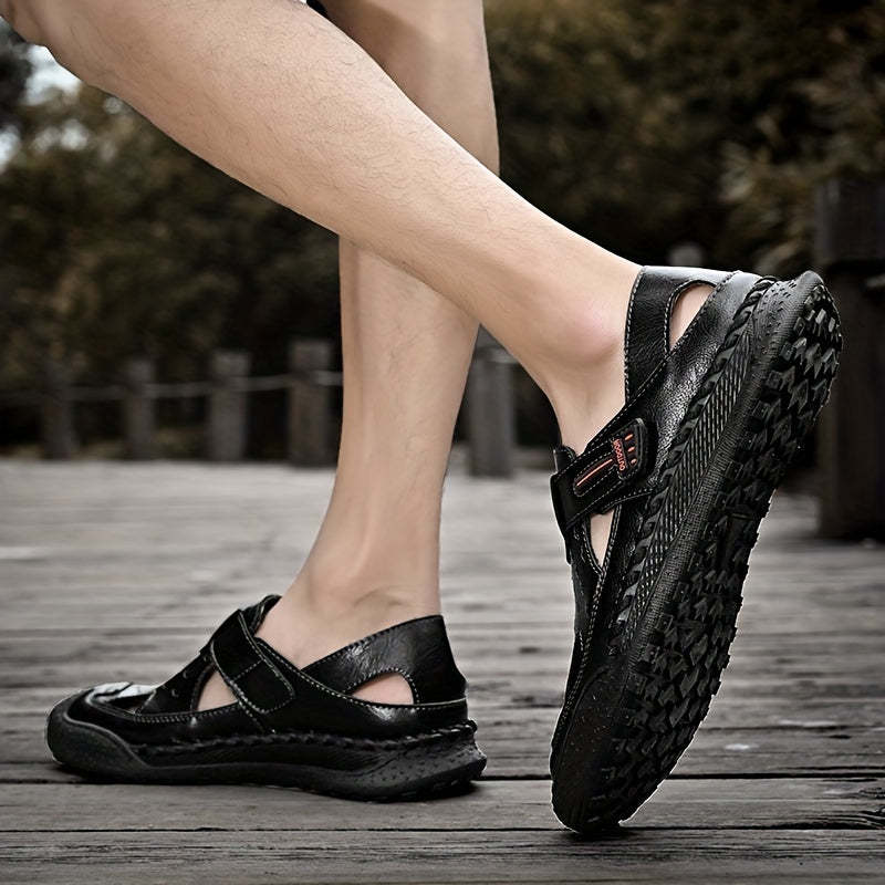 Men's Slippers Leather Sandals Closed Toe Fisherman Summer Shoes Male Hiking Beach Shoes
