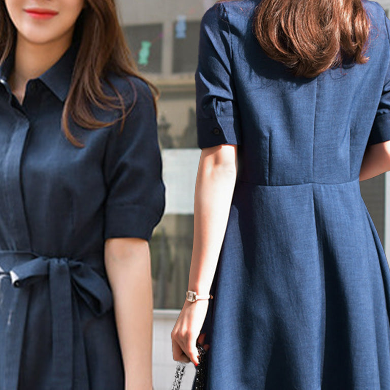 To maintain the quality of your Cozy Smart Belted Shirt Dress, we recommend a gentle machine wash. Also, it's best to air dry it and use a warm iron if needed to smoothen out any creases.