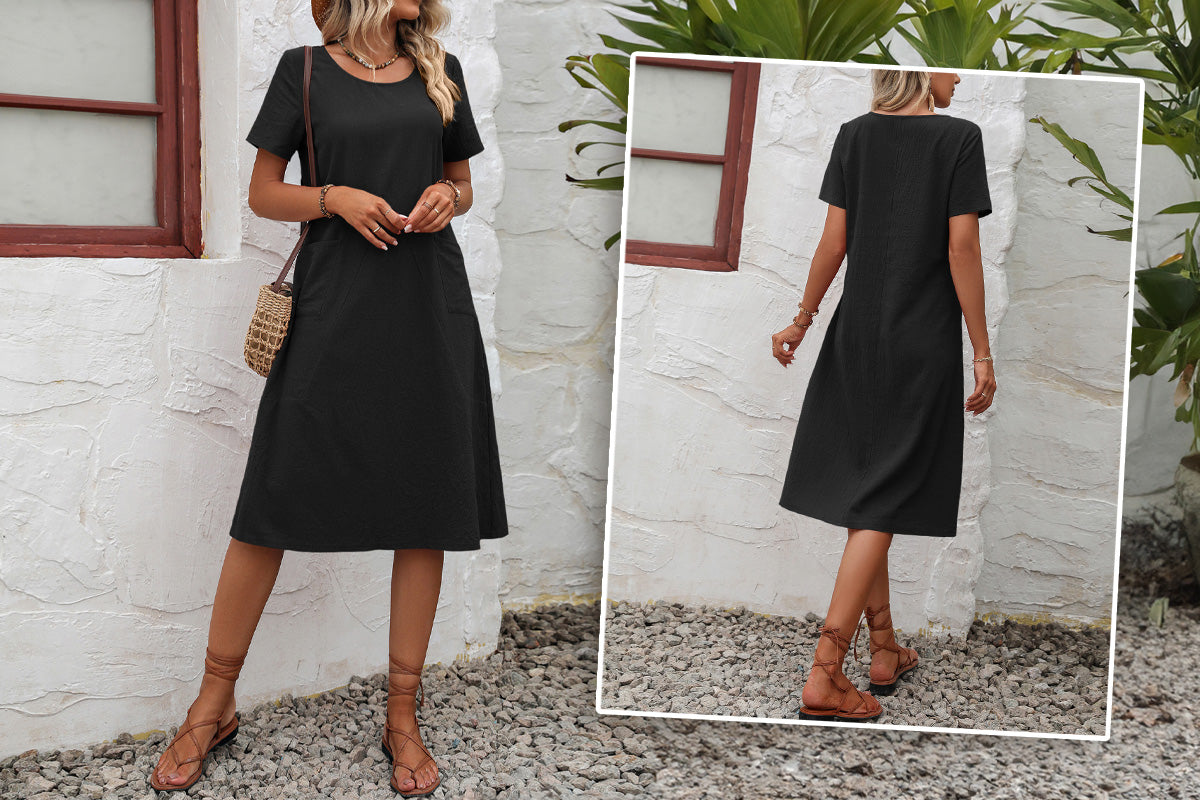 The Radiant Escape Panelled Beach Dress is made of 100% Polyester, which is generally resistant to wrinkling. However, it may develop some wrinkles during travel or prolonged sitting. In such cases, you can use a cool iron or handheld steamer to gently smooth out any wrinkles, ensuring your dress remains pristine and stylish.