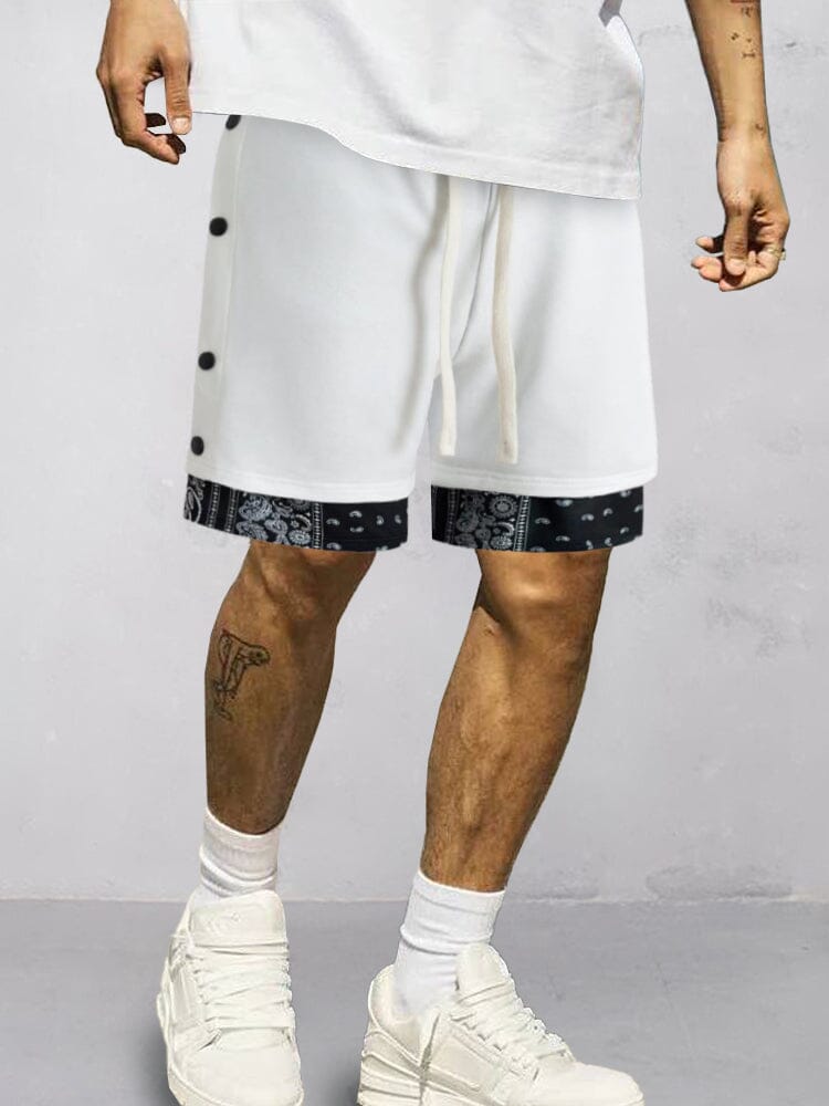Lined shorts, two pockets inside, one back pocket, elastic waist with adjustable drawstring, real side buttons