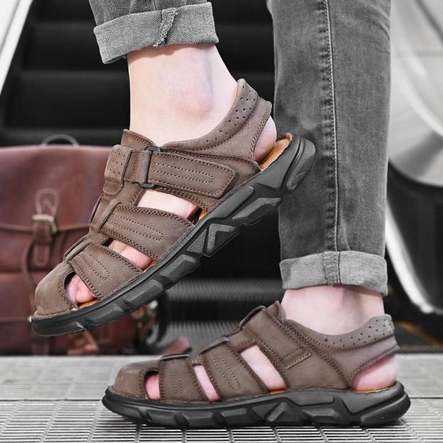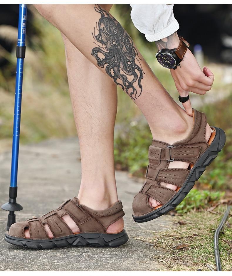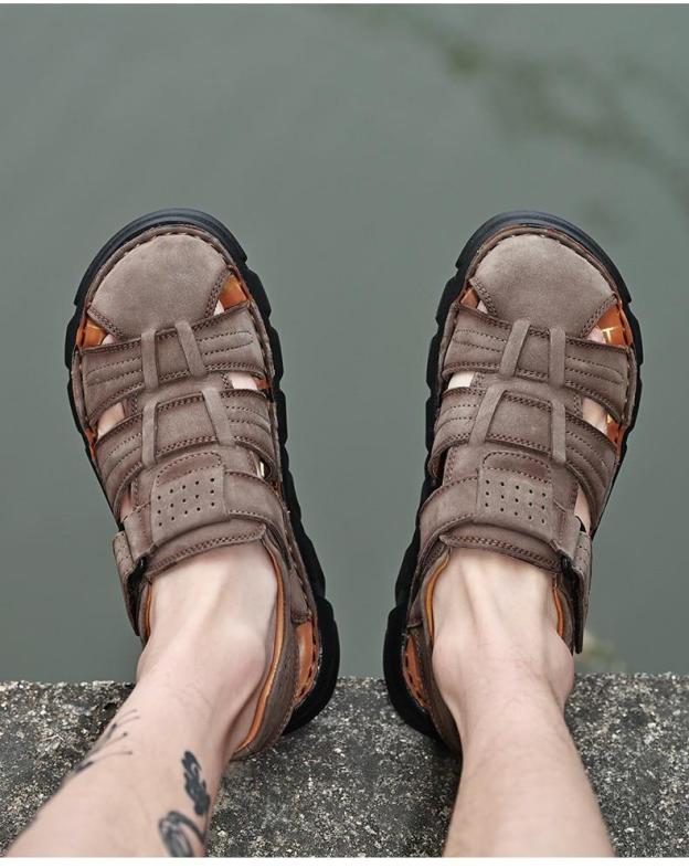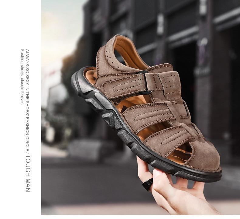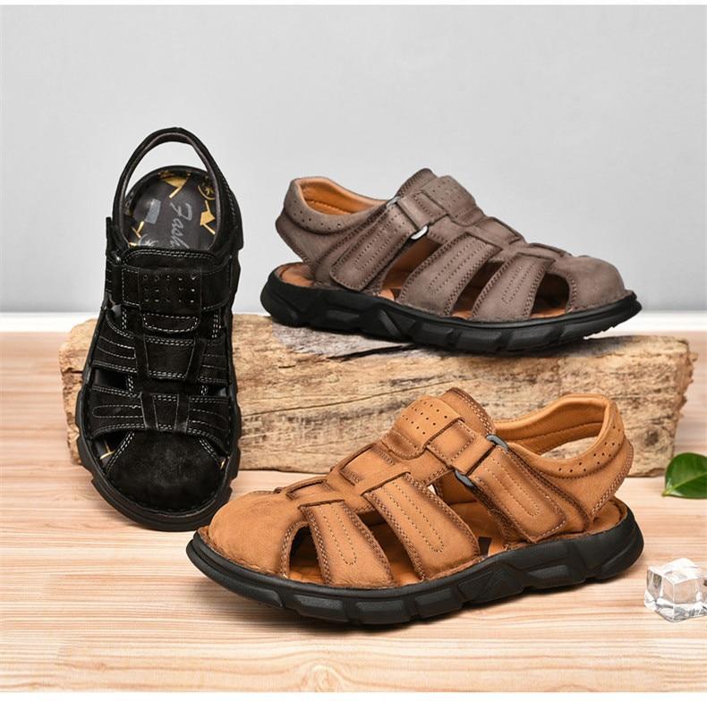 Summer Genuine Leather Men's Sandals Lightweight Men's Shoes Outdoor Comfortable Beach Sandals