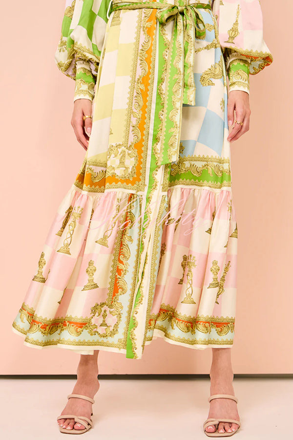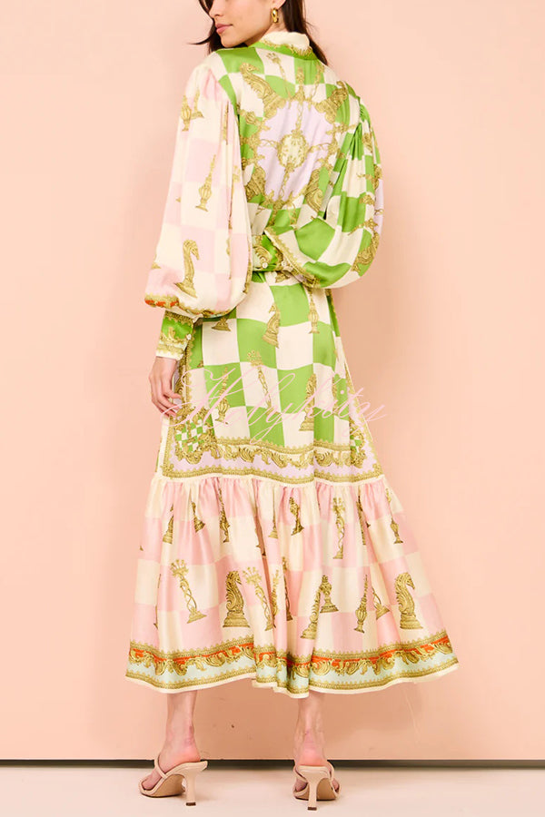 Crafted from a silk fabrication, this midi shirtdress features a point collar, gathered balloon sleeves and a self-tie belt for a flattering silhouette. Perfect for your summer getaway, this dress is versatile enough for a modest weekend look or a stylish garden party outfit.