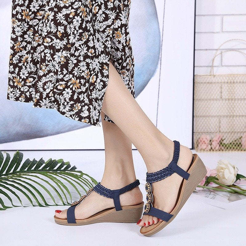 - Elegant Middle-high Heel- The wedge sole adds up your natural height and allows you to maintain your elegance at all times.