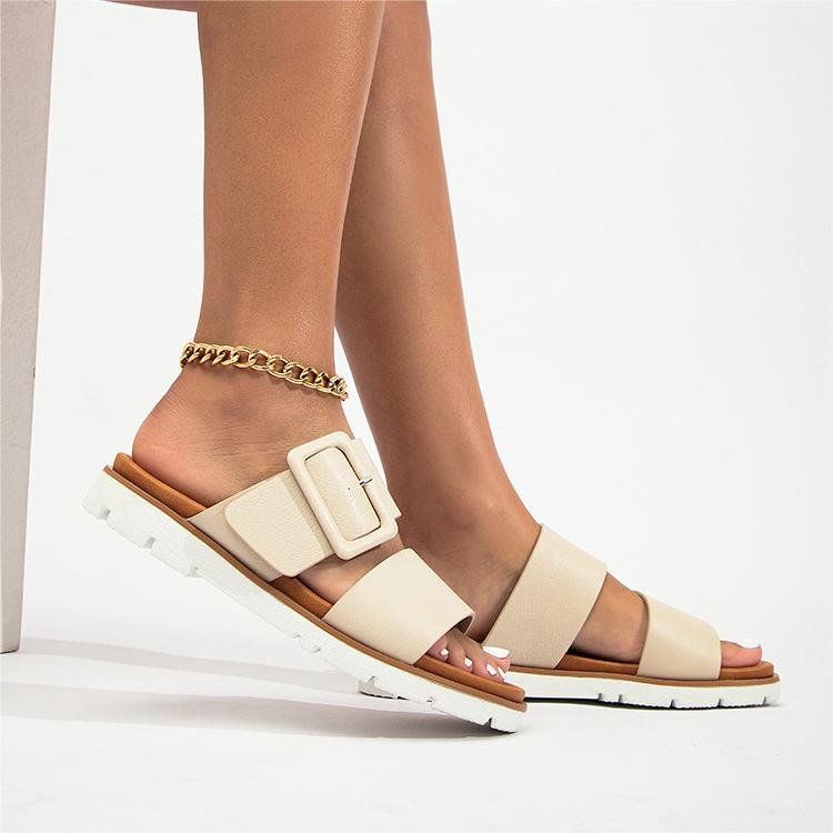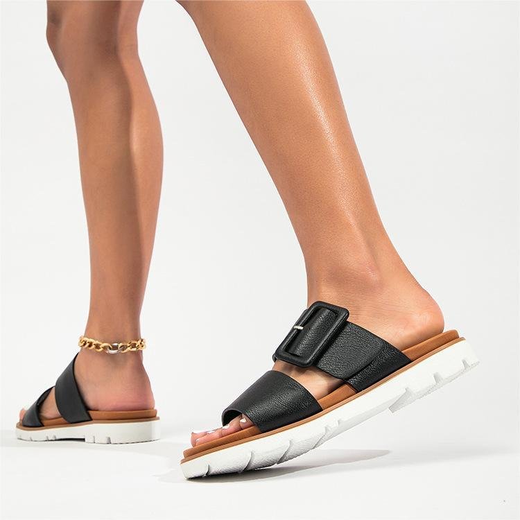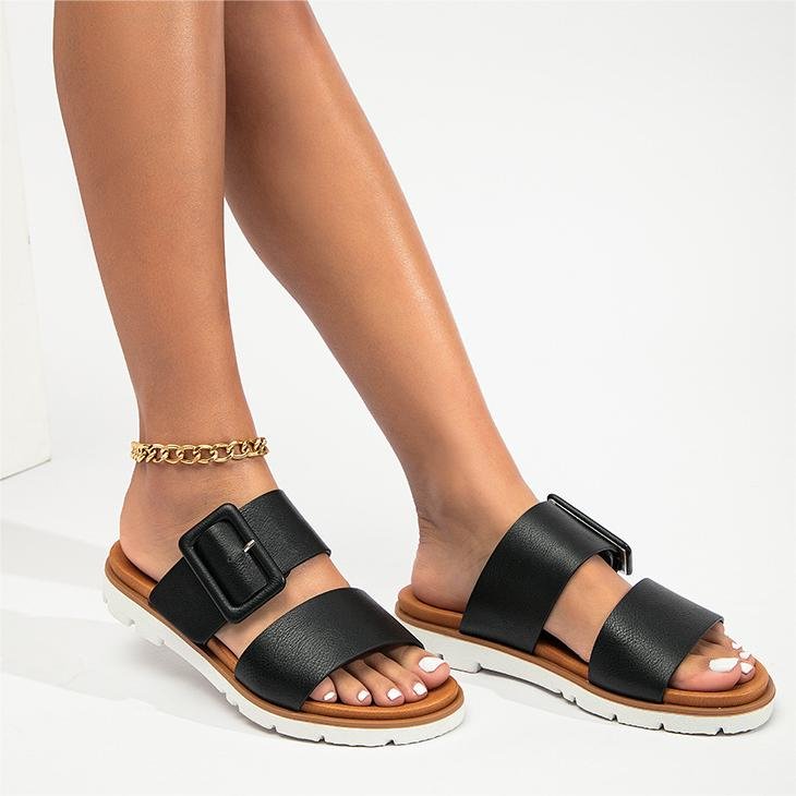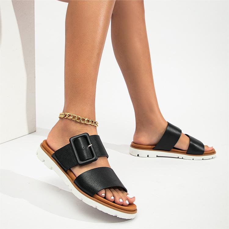 Featuring classic round toe design with thick buckle strap decoration adds chic to these cute summer slippers