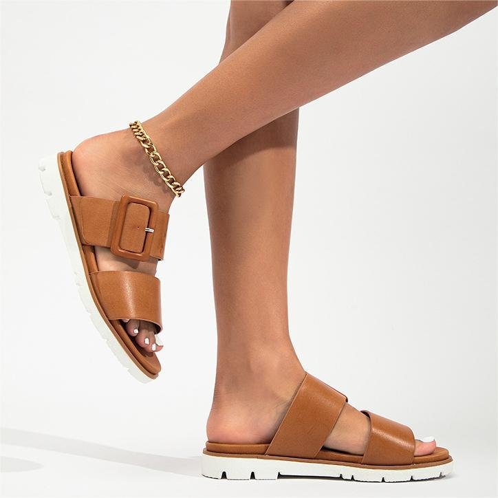 These slide sandals are made of soft leather, these slippers are suitable for all-day wear and won't make you feel heavy.