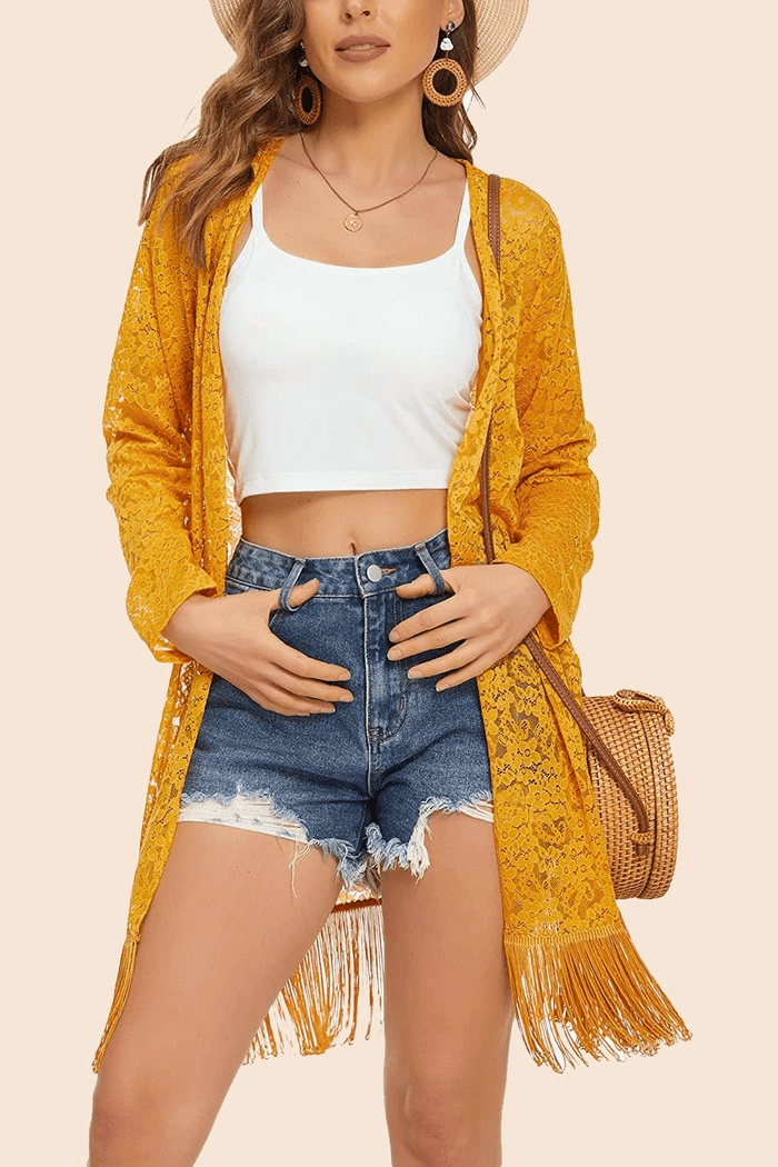 Lace Cover Up Tassel Sheer Cardigan - Zeagoo (Us Only)