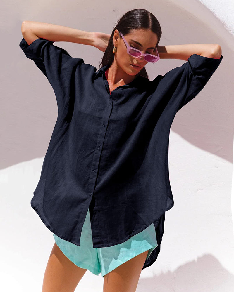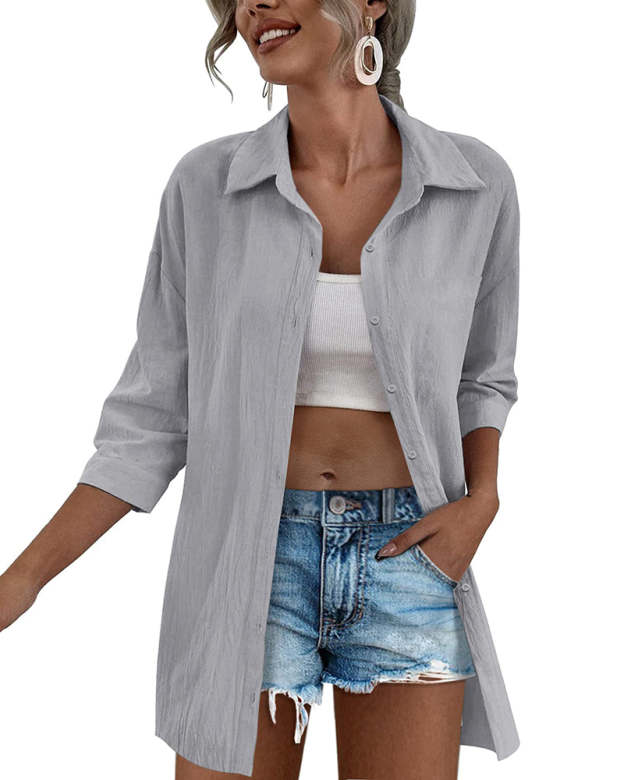 3/4 Sleeve Shirts Button Down Beach Cover Up - Zeagoo (Us Only)