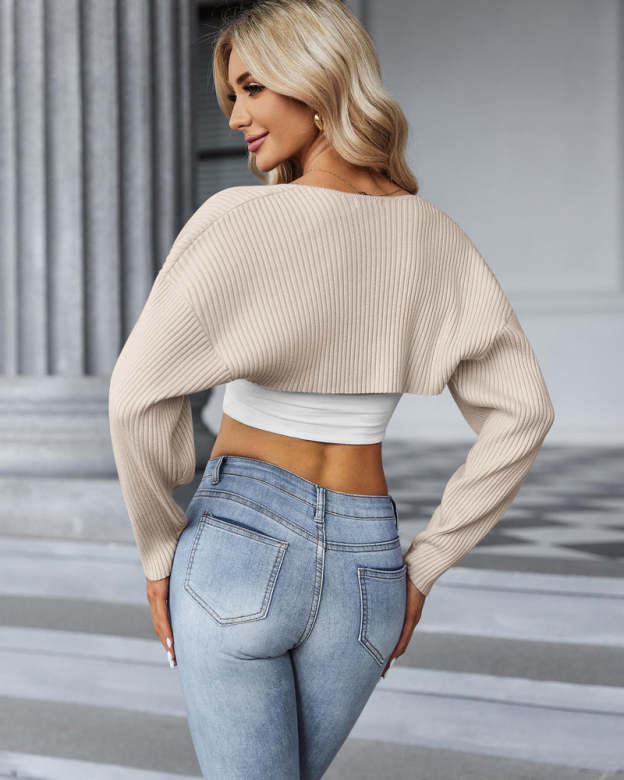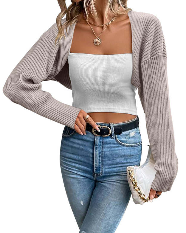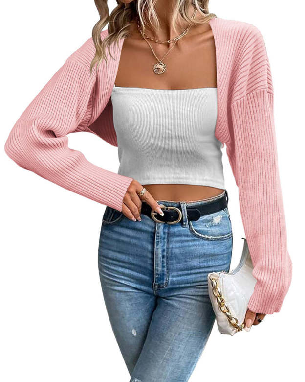 Zeagoo Women's 2023 Fall Winter Cardigan Sweater Long Sleeve Open Front Shrug Drop Shoulder Ribbed Knit Bolero Crop Top