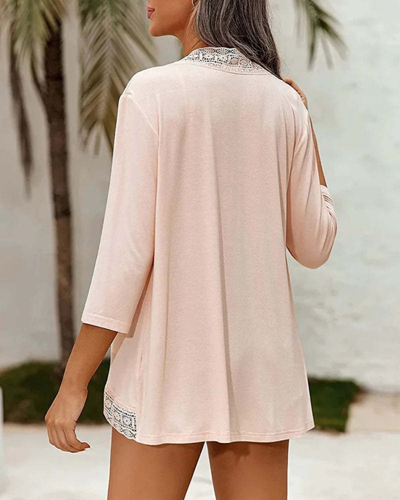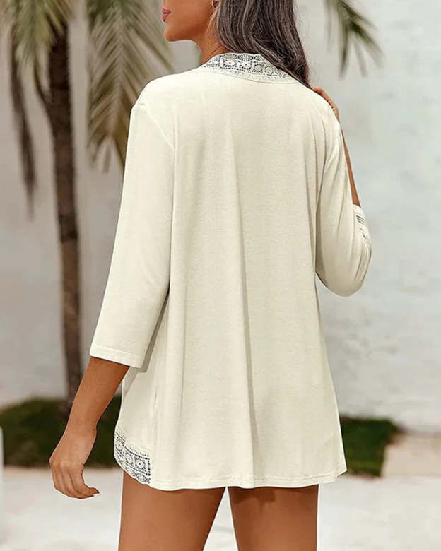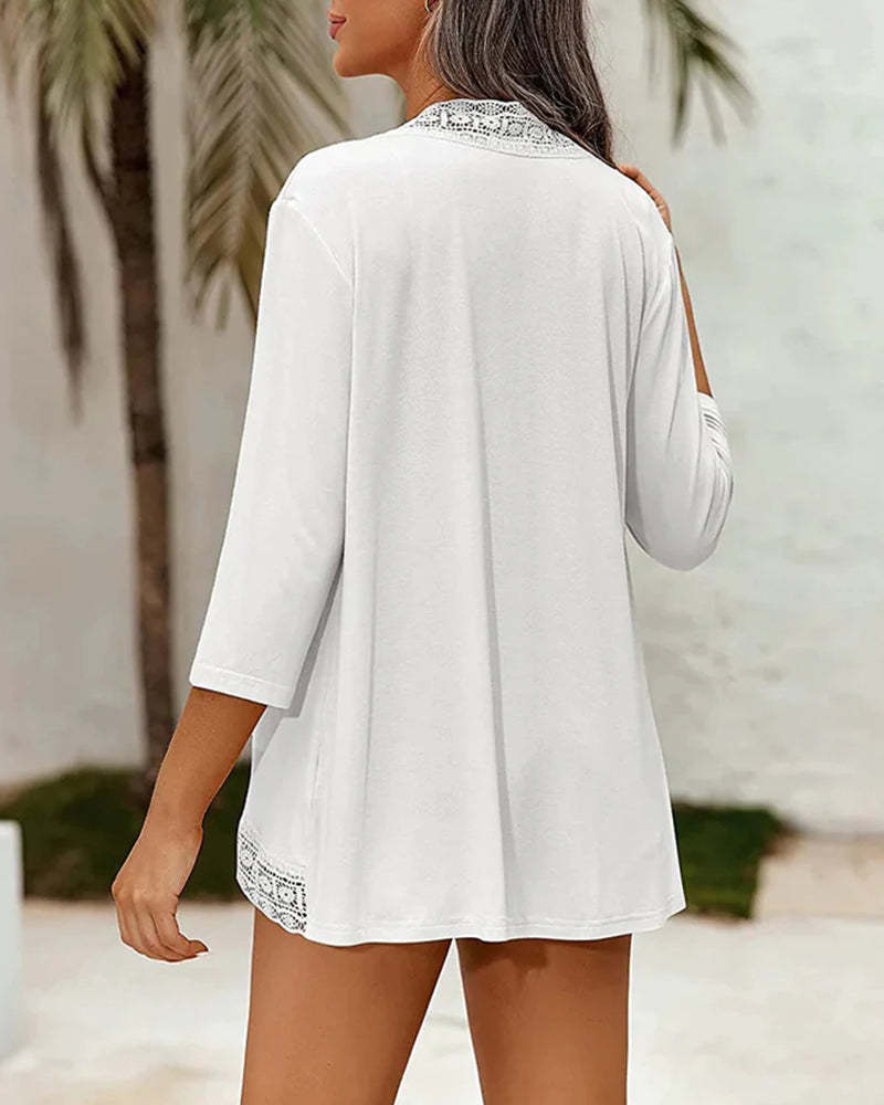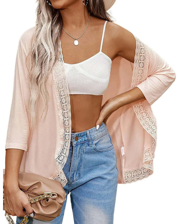 Zeagoo Women's Open Front Cardigans Lightweight 3/4 Sleeve Lace Kimono Soft Draped Cover Ups (US Only)