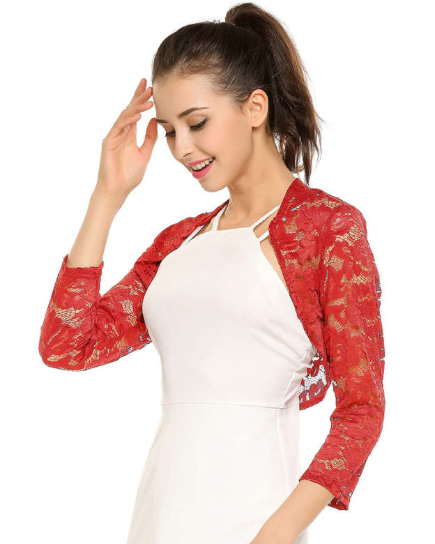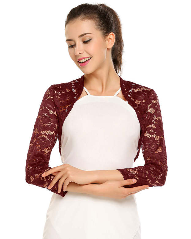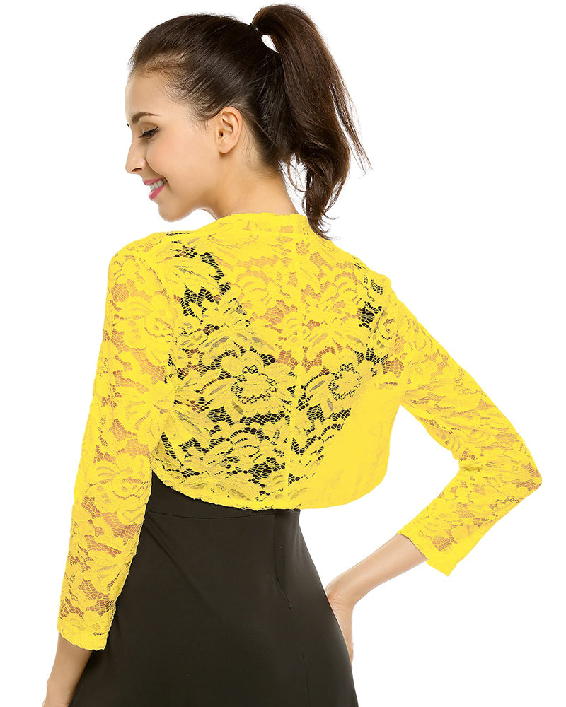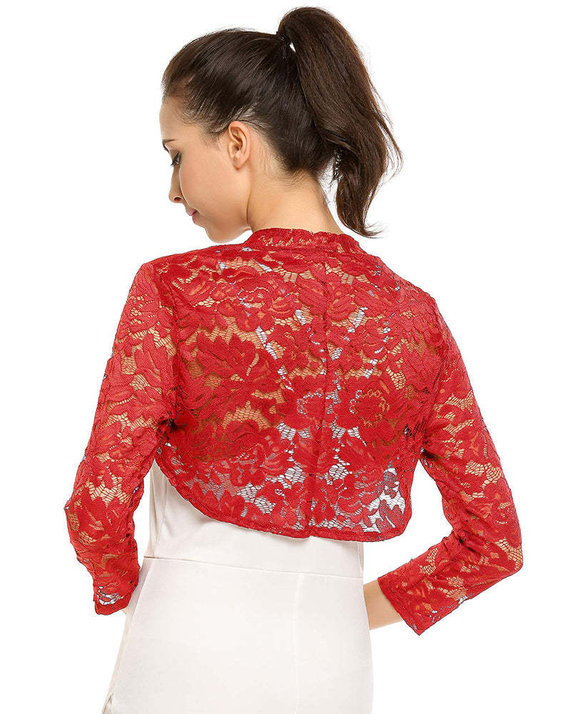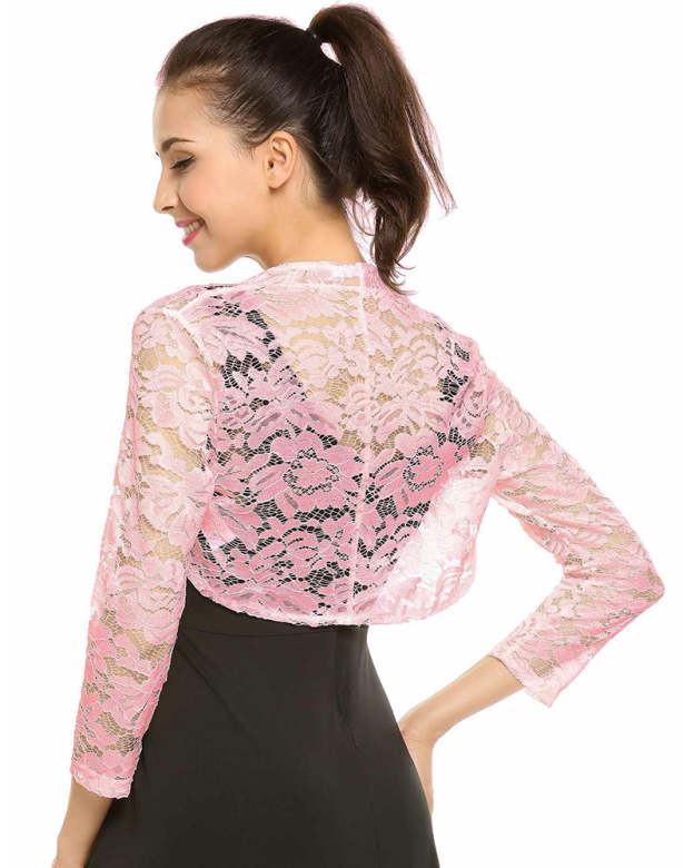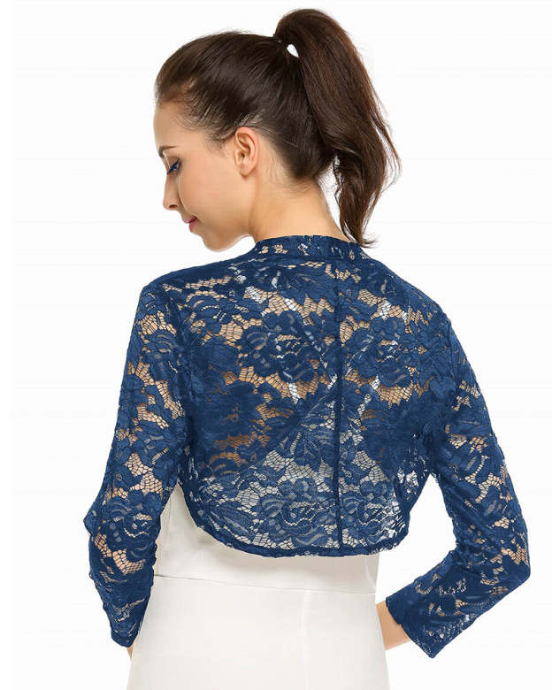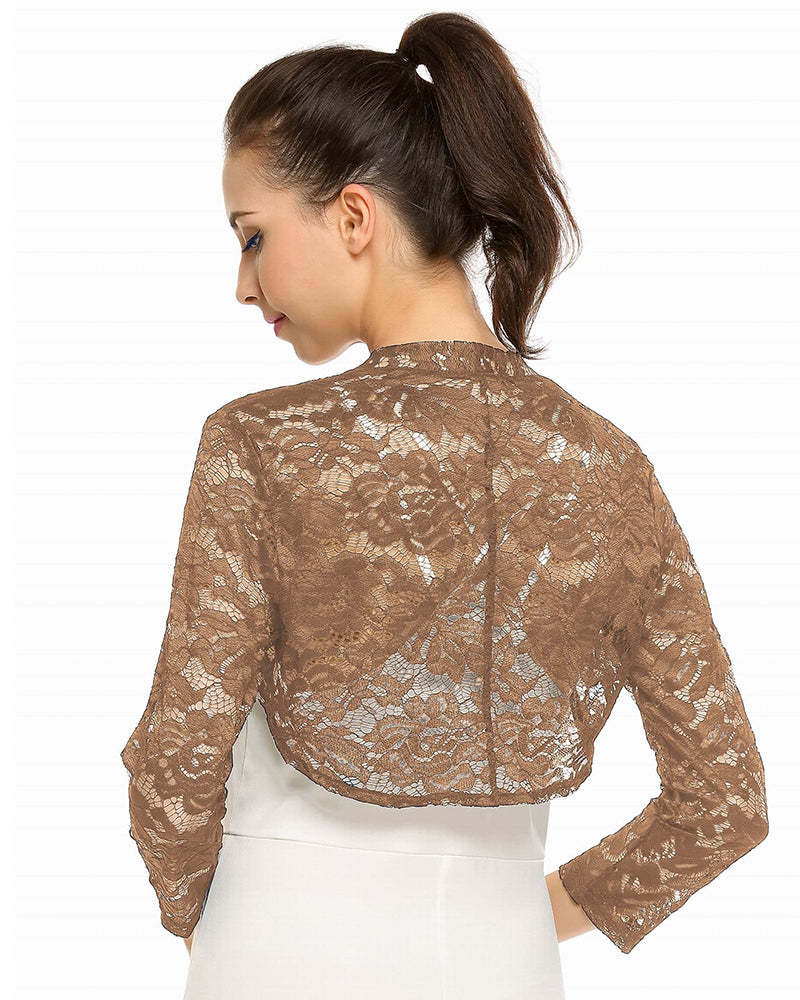 Women's 3 4 Sleeve Bolero Shrugs Crochet Lace Open Cardigan - Zeagoo (Us Only)