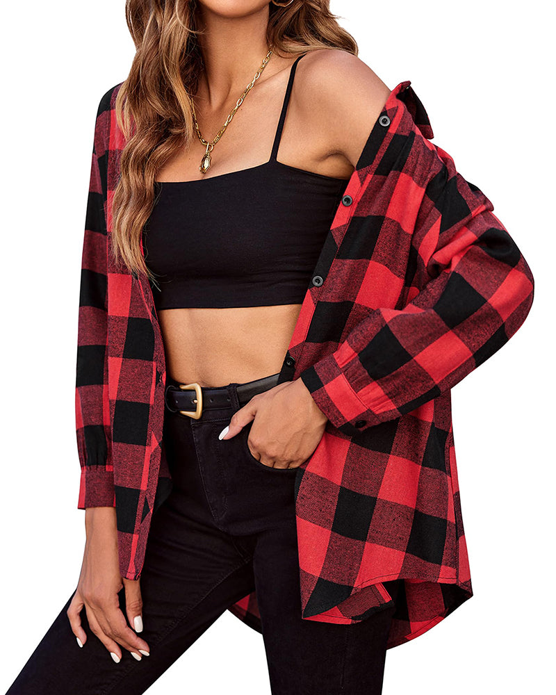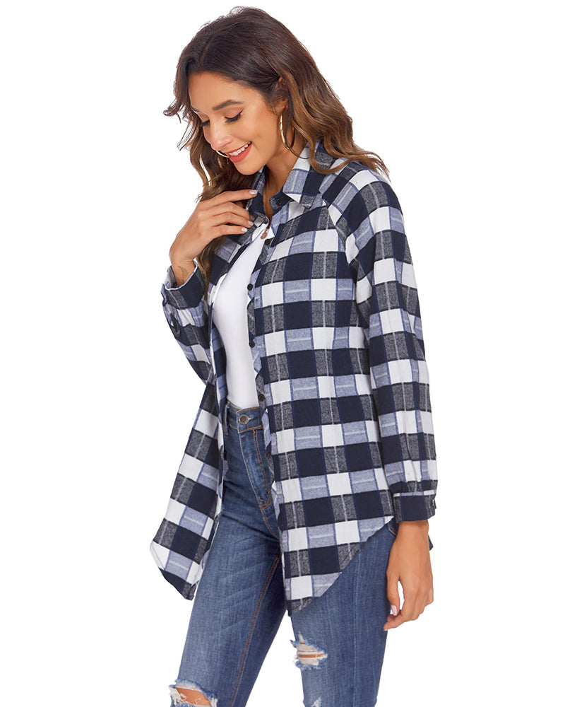 Chic Design This Classic Flannel Plaid Shirt is made of button-up closure, curved hem soft fabric, and single-breasted. Classic Full Front-Button closure and Button Cuffs for easy adjustments and added mobility