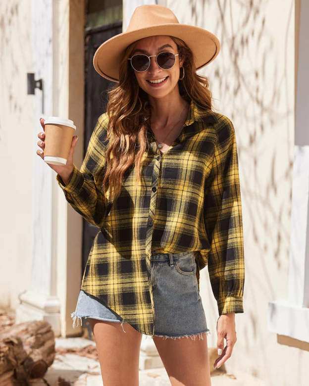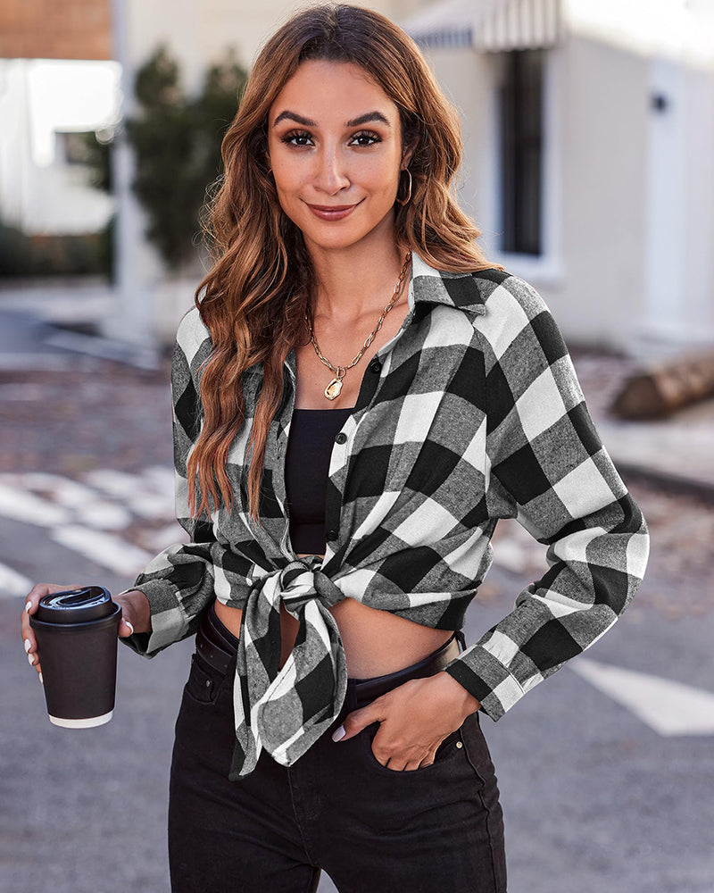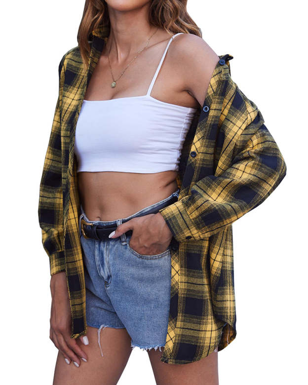 Easy To Pair Plaid shirts are a must-have for fall and winter. A simple plaid shirt can be worn in many ways. It can be worn normally, and the trousers can be tucked into the trousers to look very slim; it can also be knotted at the hem, which looks very young, sexy, cute and energetic.