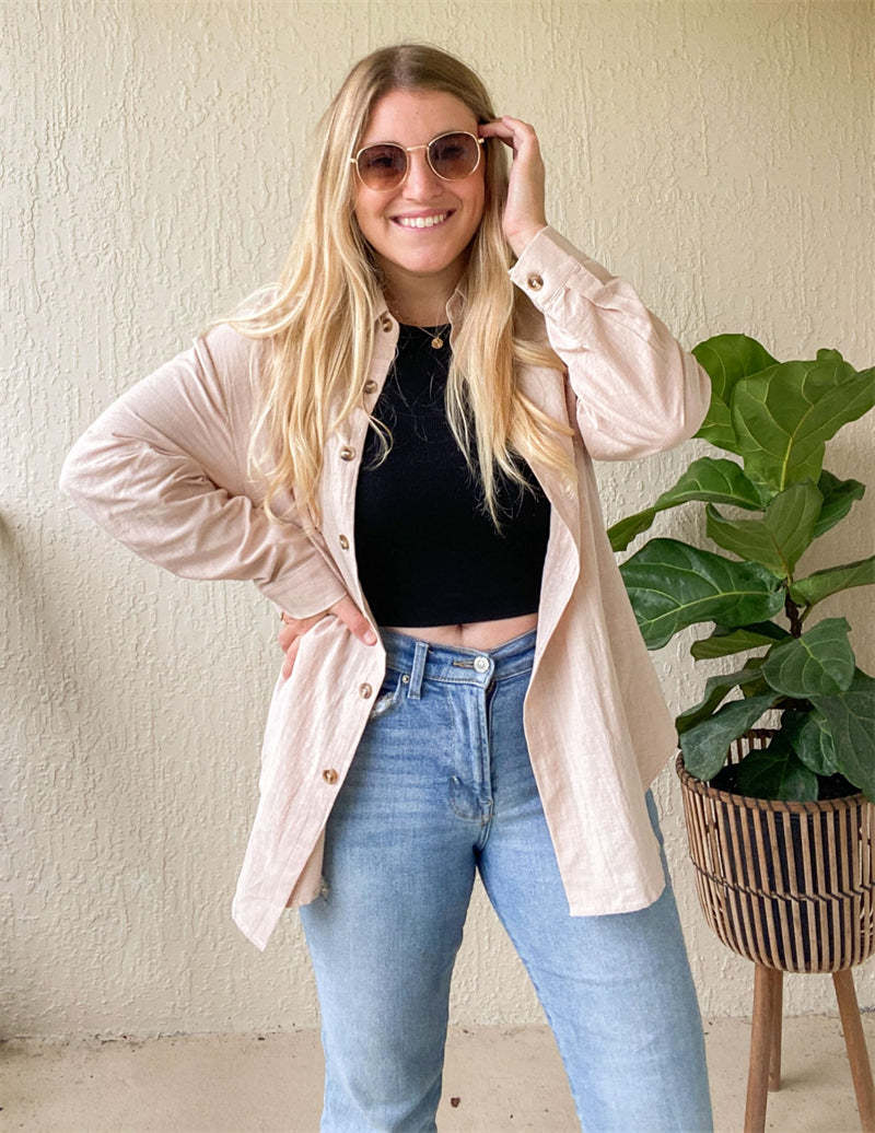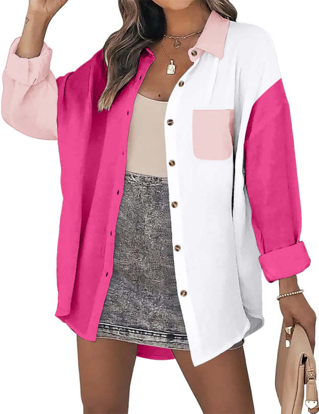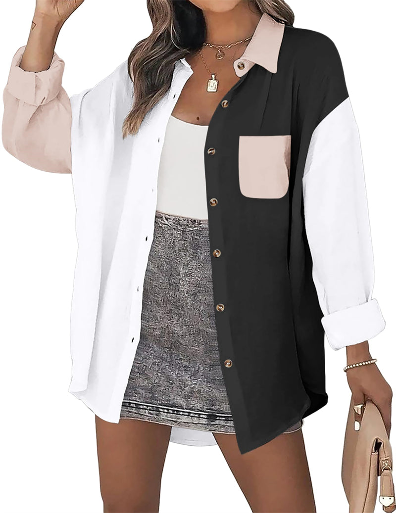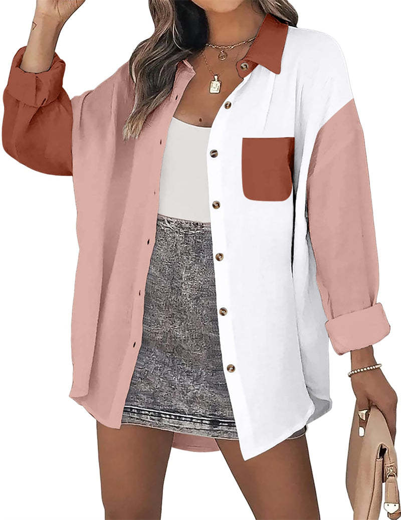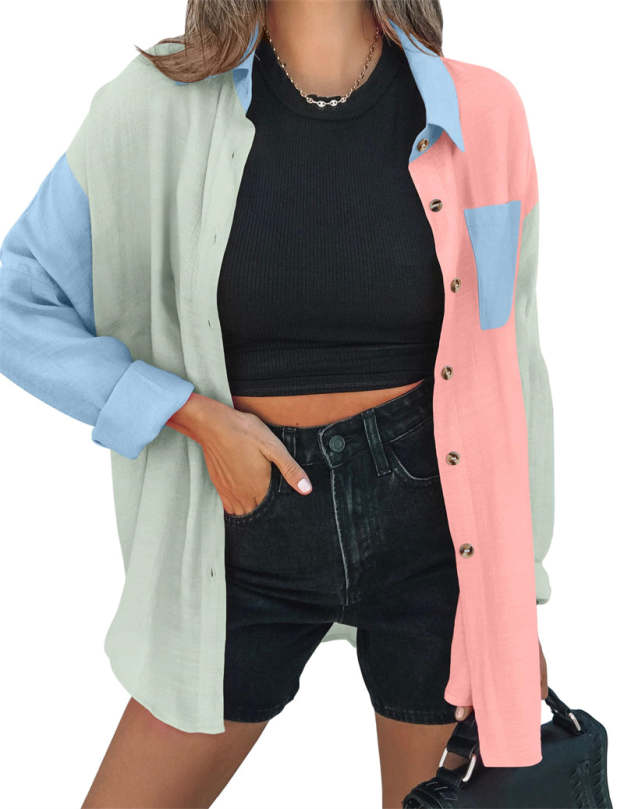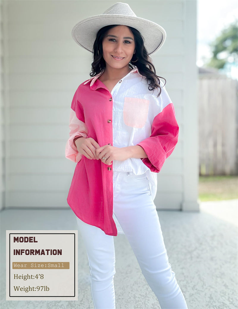Feature: Color block /solid color linen shirts, cotton tops with bust pocket, front button closures, long sleeves gauze shirts, wear as 3/4 sleeves or full sleeve, classic collar blouse, oversized button down shirts.