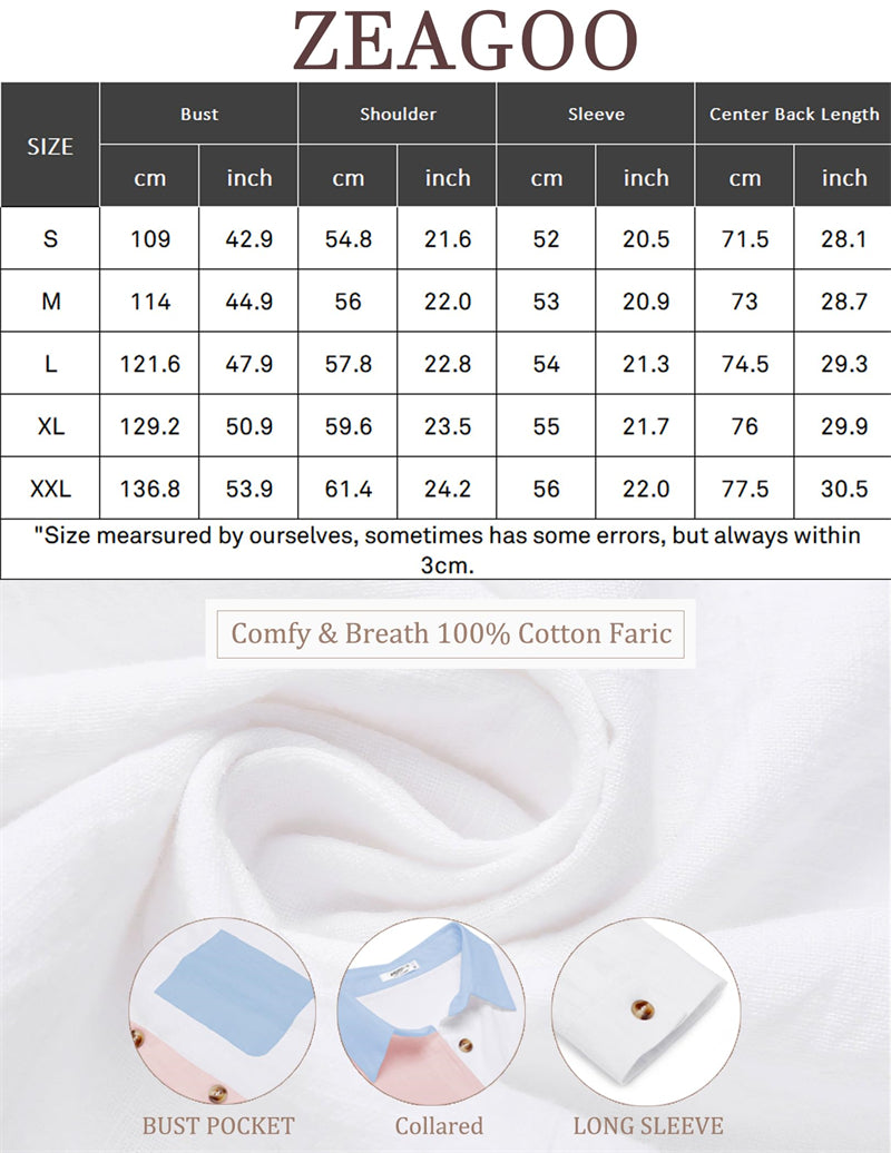 Material: The cotton linen button down shirt is made of 100% Cotton, Soft, skin-friendly, breathable, lightweight, and high-quality fabrics provide extreme comfort, cool, and charm.Cotton shirts will wrinkle after washing and need to be ironed flat after washing.