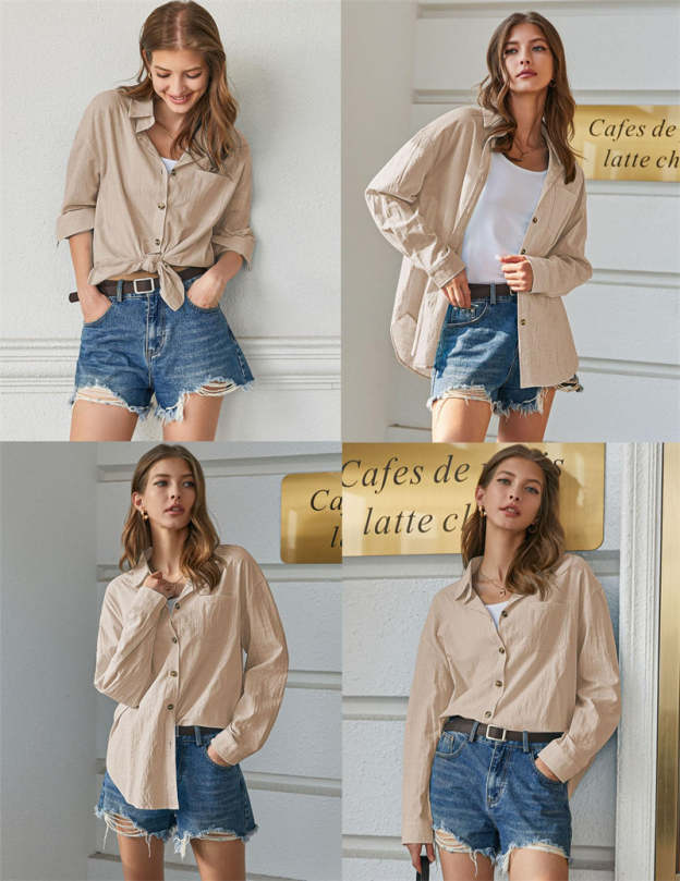 Easy To Pair£ºYou can pair this cotton shirt with a variety of tank tops, camisoles, jeans, denim shorts, skirts, leggings, sneakers, or heels for a casual look that's perfect for the entire season.