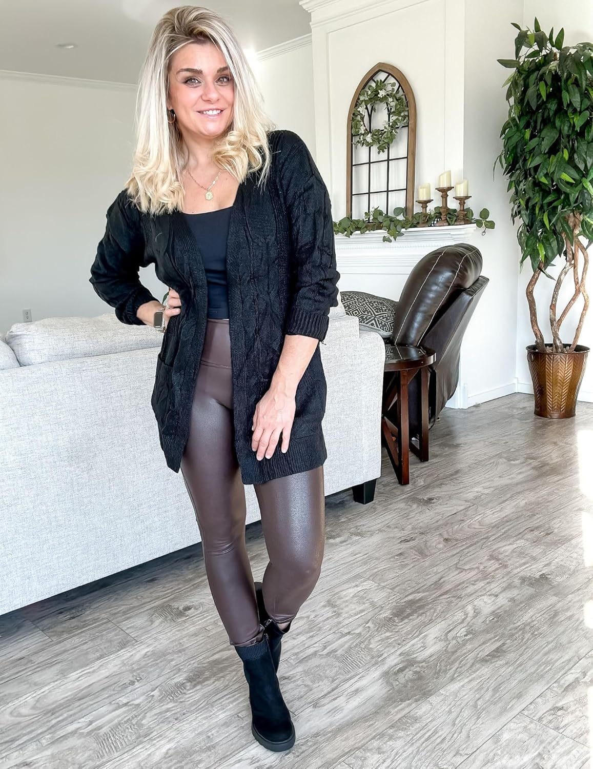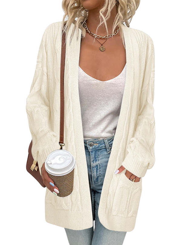 Features - Casual and boyfriend style, chunky twist cable knit, open front, two big pockets, classic solid color, loose fitting, below hip length,suitable for any body shape.